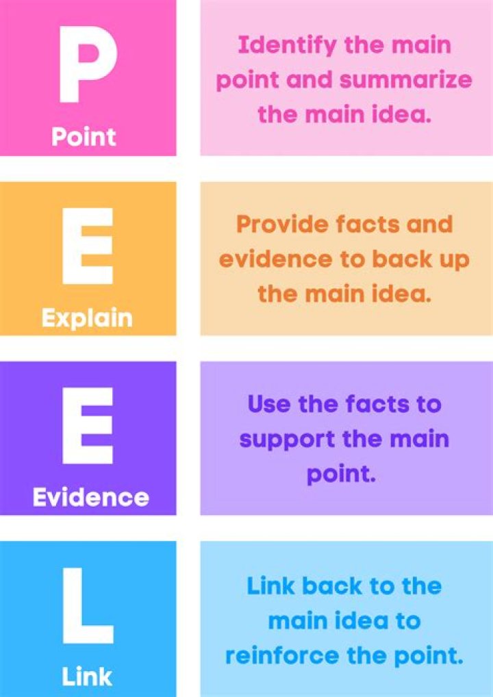 So what is PEEL all about? PEEL writing follows four simple steps; Point, Evidence, Explain, and Link. The PEEL structure is used to make opinions and findings clear.