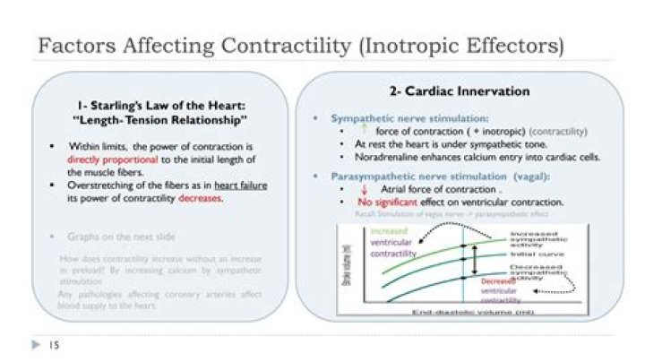 [8] Contractility describes the force of myocyte contraction, also referred to as inotropy. As the force of contraction increases, the heart is able to push more blood out of the heart, and thus increases the stroke volume.What affects preload afterload and contractility?