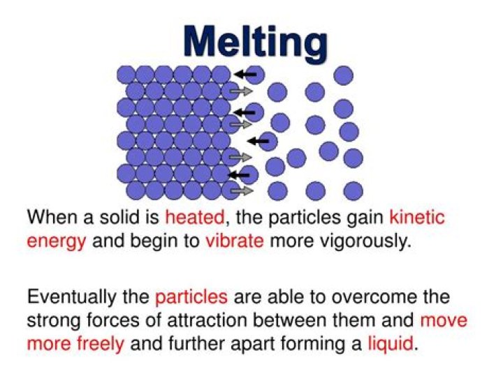 When a solid is heated, the particles gain sufficient energy to break away from one another and move past each other. The change from solid to liquid is called melting or fusion.