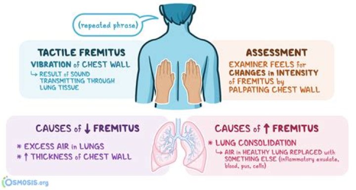 Tactile fremitus is an assessment of the low-frequency vibration of a patient’s chest, which is used as an indirect measure of the amount of air and density of tissue present within the lungs.