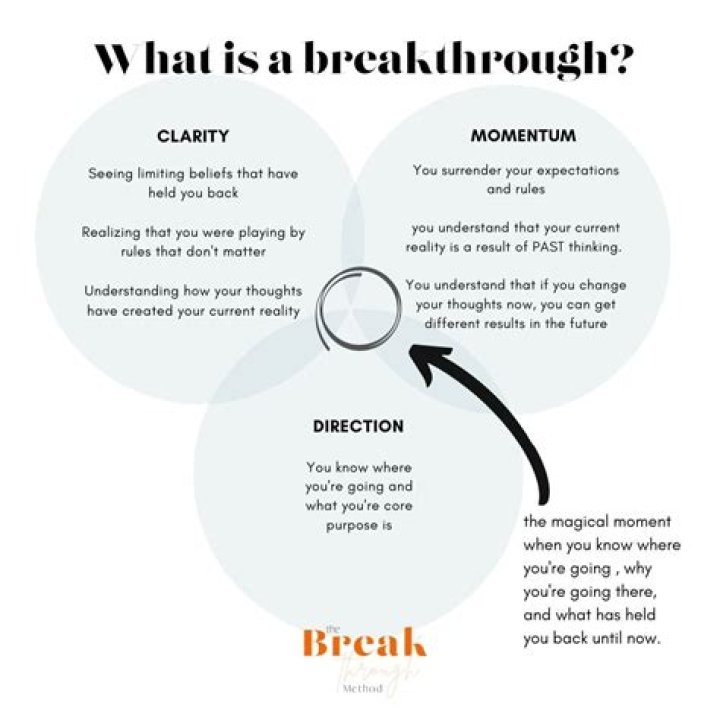 A breakthrough is something that changes the course of your life going forward and ensures that things will never be the same for you again. Most of what a breakthrough requires is for you to have the courage and the bravery to stops settling for second best. Everything you need in your life already exists.