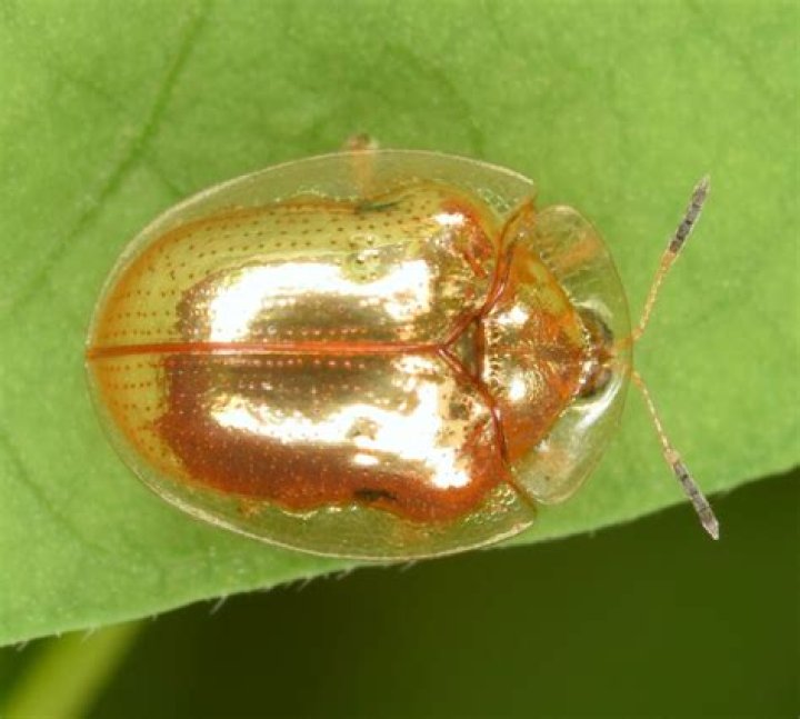 Also known as goldbugs, or golden lady bugs, golden tortoise beetles are a common garden pest that chew through the leaves of various plants, especially morning glory vines and sweet potato vines. Despite their destructive nature, golden tortoise beetles are actually rather handsome bugs.