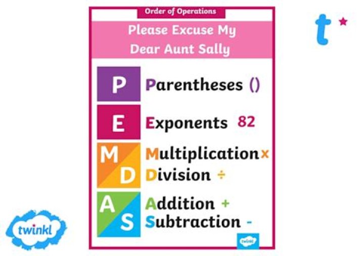 We can remember the order using PEMDAS: Parentheses, Exponents, Multiplication and Division (from left to right), Addition and Subtraction (from left to right).