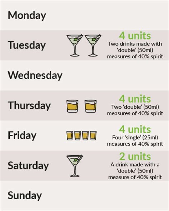 It defines excess as consuming eight or more drinks per week for women or 15 or more for men; or any use of alcohol by pregnant women or people under 21—the latter a metric that may raise many a college student’s eyebrows.How much is a shot?