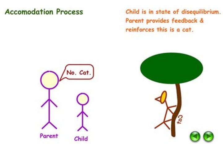 Children may use new information from the environment to adjust or modify existing schemes and meet their needs. Adjusting or modifying schemes to meet new needs is called accommodation. For example, a young child may have an established scheme in which he or she calls any large item with wheels a car.What is the accommodation stage?