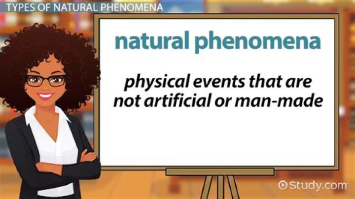 Types of natural phenomena include: Weather, fog, thunder, tornadoes; biological processes, decomposition, germination; physical processes, wave propagation, erosion; tidal flow, moonbow, blood moon and natural disasters such as electromagnetic pulses, volcanic eruptions, earthquakes, midnight sun and polar night.