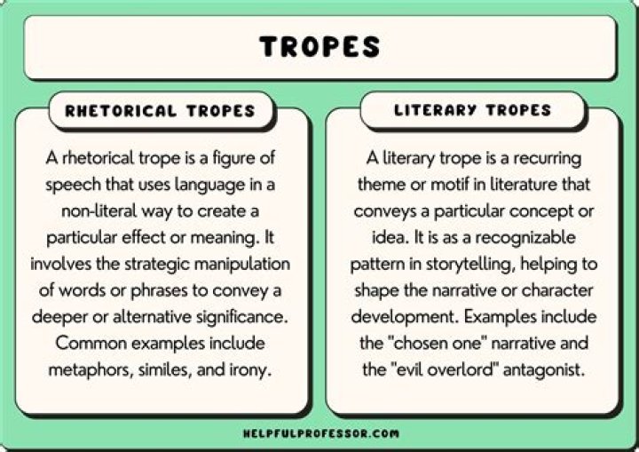 A “meme” exists in a more tangible form and is contagious, like a quirky fashion or a video clip that goes viral. Finally, a “trope” exists in a literary form, like a figure of speech or a thematic device. … trope: “A figurative or metaphorical use of a word or expression.” (The author’s favorite trope is hyperbole.) …