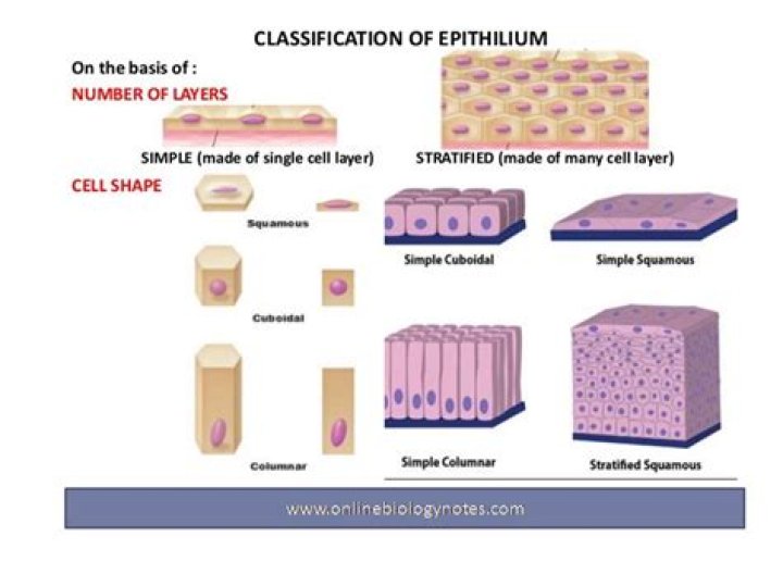 Based on the cell shape, epithelial tissue is classified into squamous, cuboidal or columnar. Depending on the number of layers, the tissue is divided into simple or stratified. Subclassifications include pseudostratified, ciliated or transitional.