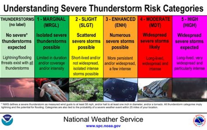 A level 3 or enhanced risk deals with numerous and persistent severe storms with a few intense ones; that produce a few tornadoes and several reports of wind damage.