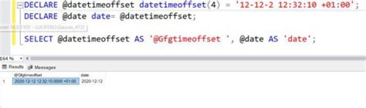With its Kind property, DateTime is able to reflect only Coordinated Universal Time (UTC) and the system’s local time zone. DateTimeOffset reflects a time’s offset from UTC, but it does not reflect the actual time zone to which that offset belongs.What is Datetimeoffset 7 SQL Server?