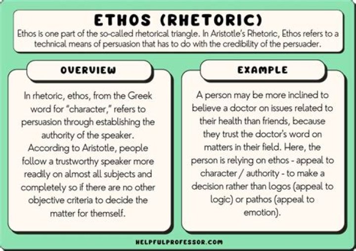 ethos, in rhetoric, the character or emotions of a speaker or writer that are expressed in the attempt to persuade an audience. It is distinguished from pathos, which is the emotion the speaker or writer hopes to induce in the audience.Why do authors use ethos?
