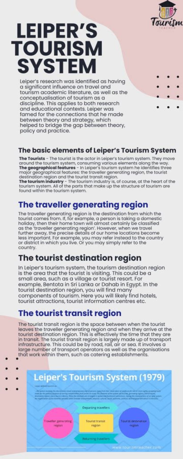 Leiper (1979) defined tourism as: … The elements of the system are tourists, generating regions, transit routes, destination regions and a tourist industry. These five elements are arranged in spatial and functional connections.