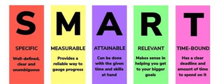 Specific, measurable, achievable, realistic, time bound.