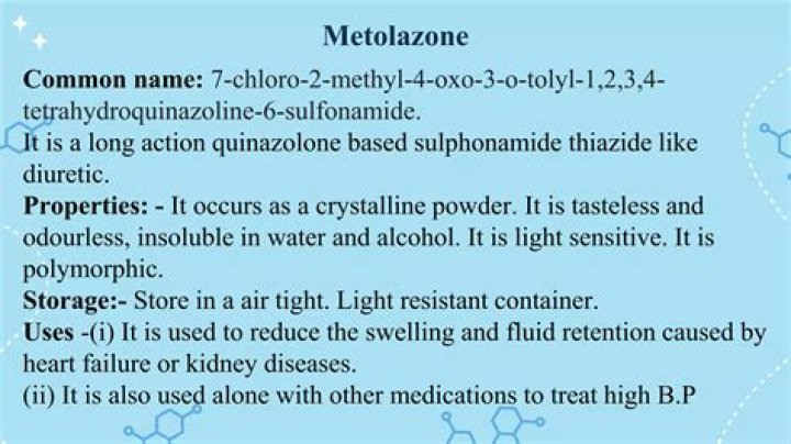 Metolazone is a thiazide-like diuretic marketed under the brand names Zytanix, Metoz, Zaroxolyn, and Mykrox.