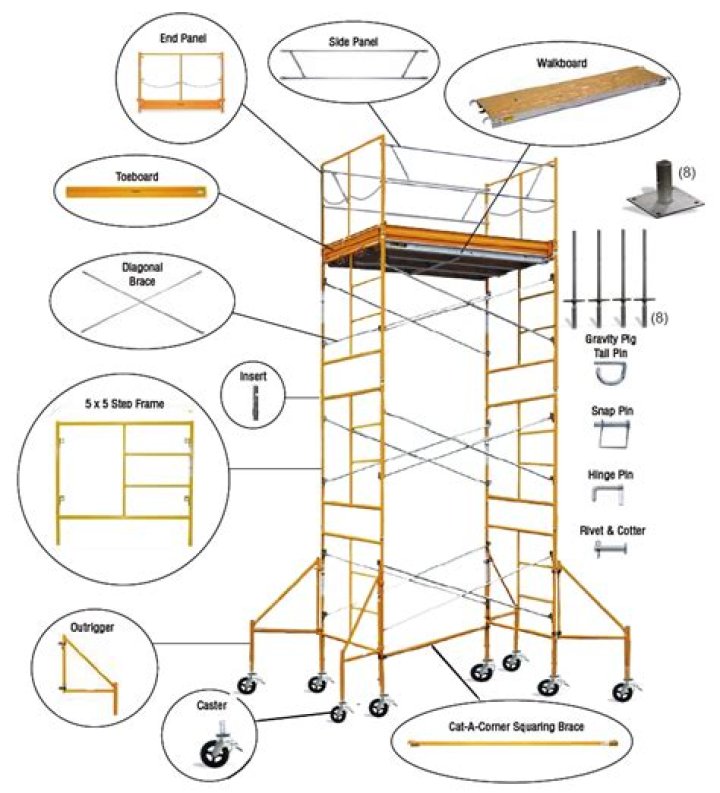 What are the different parts of metal scaffolding?