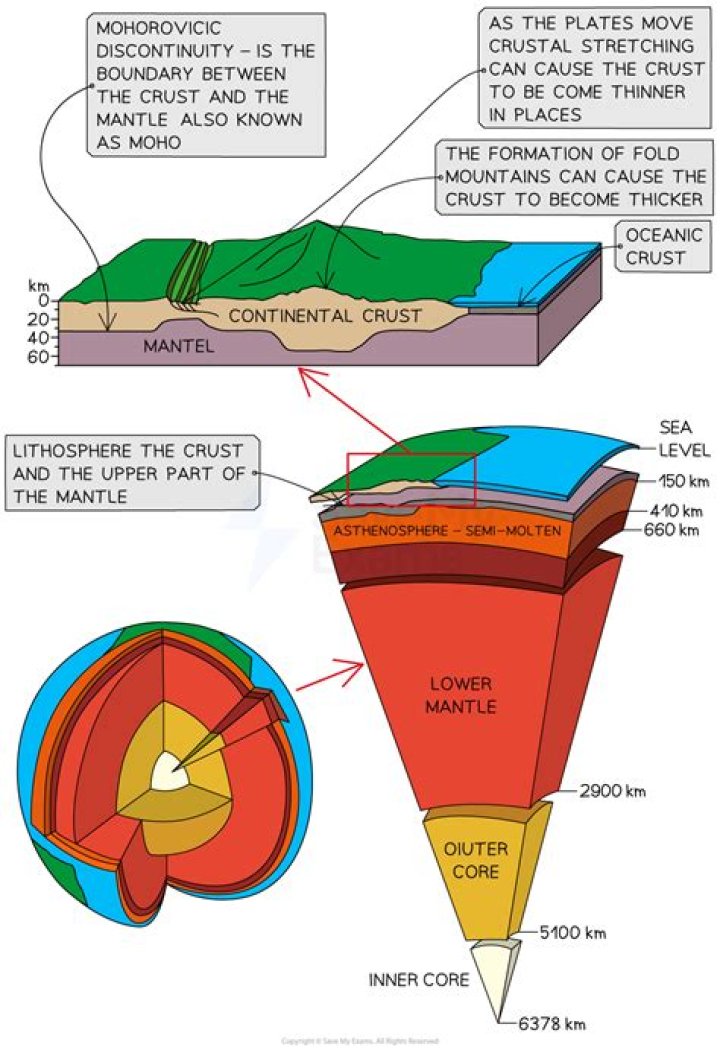 A tectonic plate (also called lithospheric plate) is a massive, irregularly shaped slab of solid rock, generally composed of both continental and oceanic lithosphere. Plate size can vary greatly, from a few hundred to thousands of kilometers across; the Pacific and Antarctic Plates are among the largest.