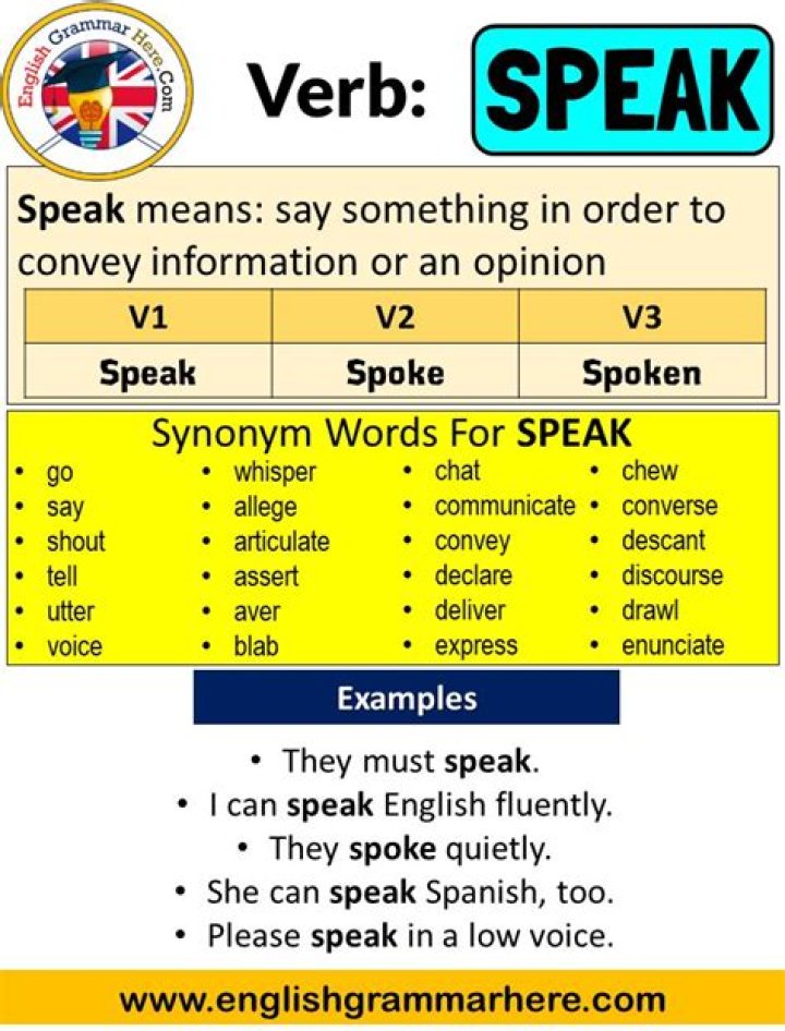 Present Tense:SpeakPast Tense:SpokePast Participle:SpokenPresent Participle:SpeakingIs speech a form of speak?