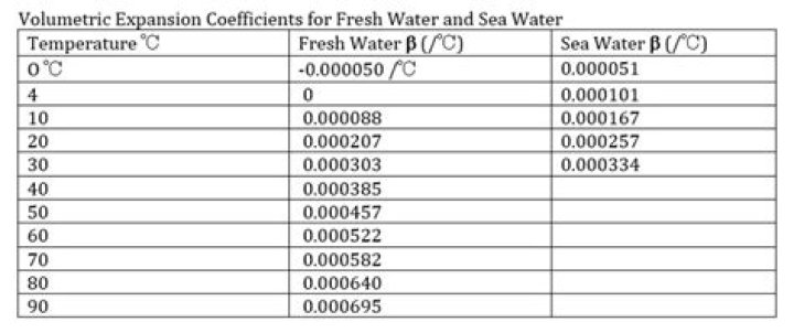 Table 1. Thermal Expansion Coefficients at 20ºCMaterialCoefficient of volume expansion β(1/ºC)Water210 × 10– 6GasesAir and most other gases at atmospheric pressure3400 × 10– 6