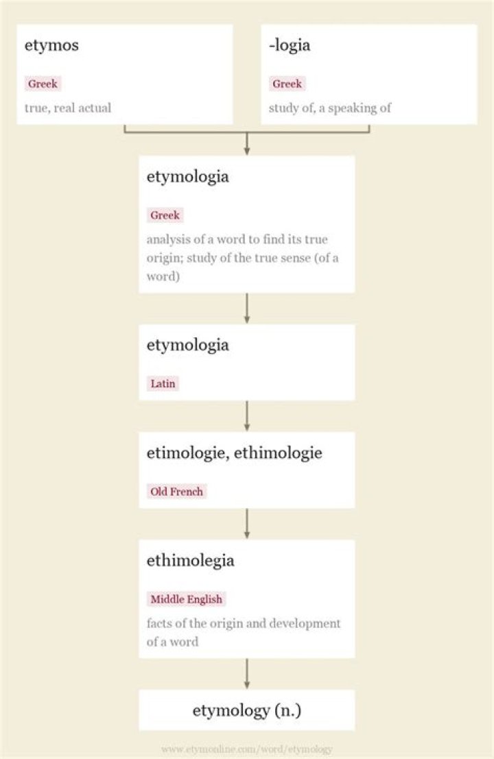 “Etymology is the investigation of word histories.” Every word in every language has a unique origin and history; words can be born in many ways, and often their histories are quite adventurous and informative. Etymology investigates and documents the lives (mainly the origins) of words.