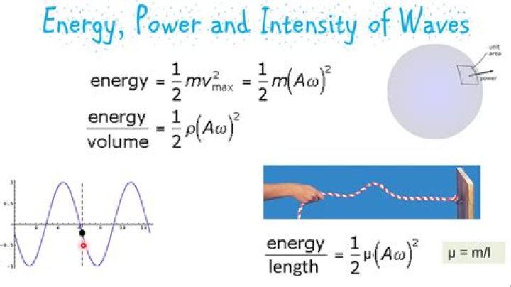 The intensity (I) of a wave is defined as the rate at which it transfers energy divided by the area over which the energy is spread. In other words, intensity is the rate of energy flow per unit area.