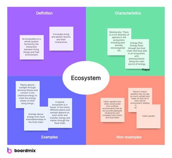 A Frayer Model template is a graphic organizer used to help students build their vocabulary. The technique involves requiring the students to define target words and use their knowledge by coming up with examples and nonexamples, giving characteristics or drawing an illustration to explain the word’s meaning.