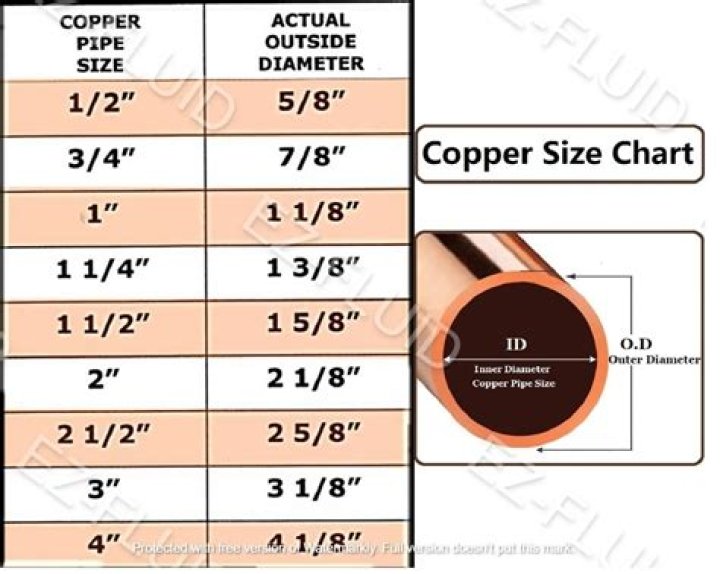 The nominal size of copper pipe, whether supply lines or DWV, is always 1/8 inch less than the OD measurement. For example, copper pipe that measures 5/8 inch OD, is called 1/2- inch pipe. The ID varies because wall thickness varies. Type K has the thickest wall, followed by Type L, Type M and DWV.