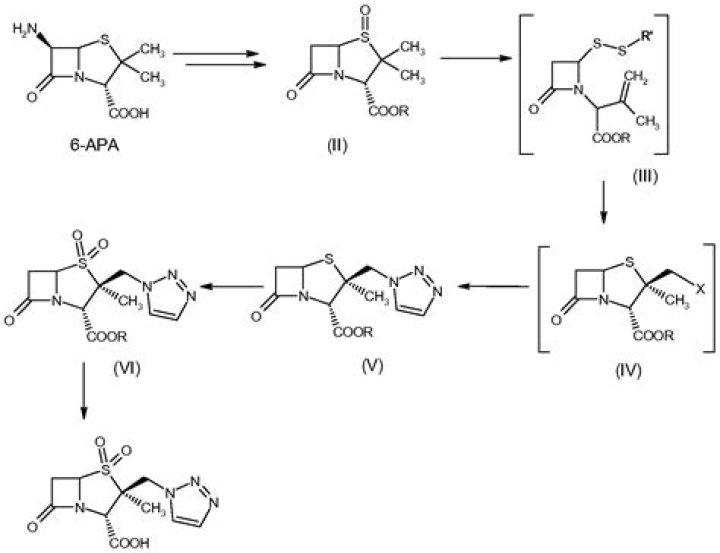 Tazobactam is a member of the class of penicillanic acids that is sulbactam in which one of the exocyclic methyl hydrogens is replaced by a 1,2,3-triazol-1-yl group; used (in the form of its sodium salt) in combination with ceftolozane sulfate for treatment of complicated intra-abdominal infections and complicated …