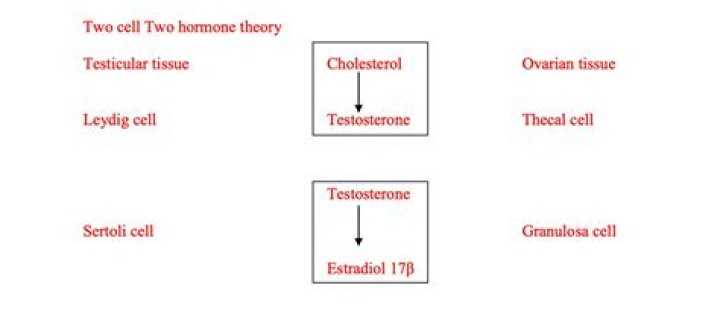 The granulosa cell (GC) is a critical somatic component of the ovary. It is essential for follicle development by supporting the developing oocyte, proliferating and producing sex steroids and disparate growth factors.What is two cell hypothesis of granulosa cell during menstrual cycle?