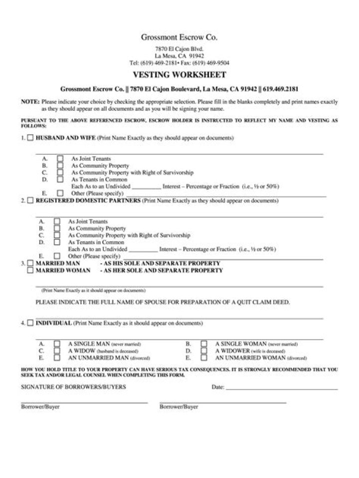 Inside is the Vesting Form, which is an integral part of the escrow process that will help outline how the buyer intends to hold title on their new property. … That’s because the Vesting Form outlines who is responsible for the costs, benefits and transferability of a property.What does vesting mean in business?
