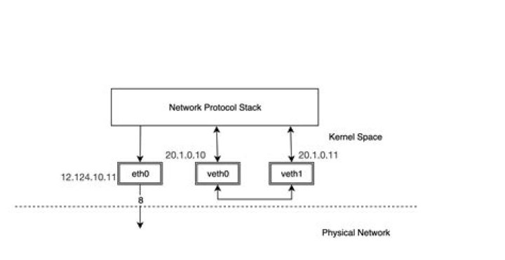 The veth devices are virtual Ethernet devices. They can act as tunnels between network namespaces to create a bridge to a physical network device in another namespace, but can also be used as standalone network devices. veth devices are always created in interconnected pairs.