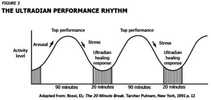 These are ultradian rhythms, or rhythms that play out in increments shorter than a day. Examples include everything from heartbeat to digestion to the varying stages we go through during sleep. … This is a rhythm that plays out in 80–120 minute cycles non-stop, day and night.How do you use ultradian rhythms?