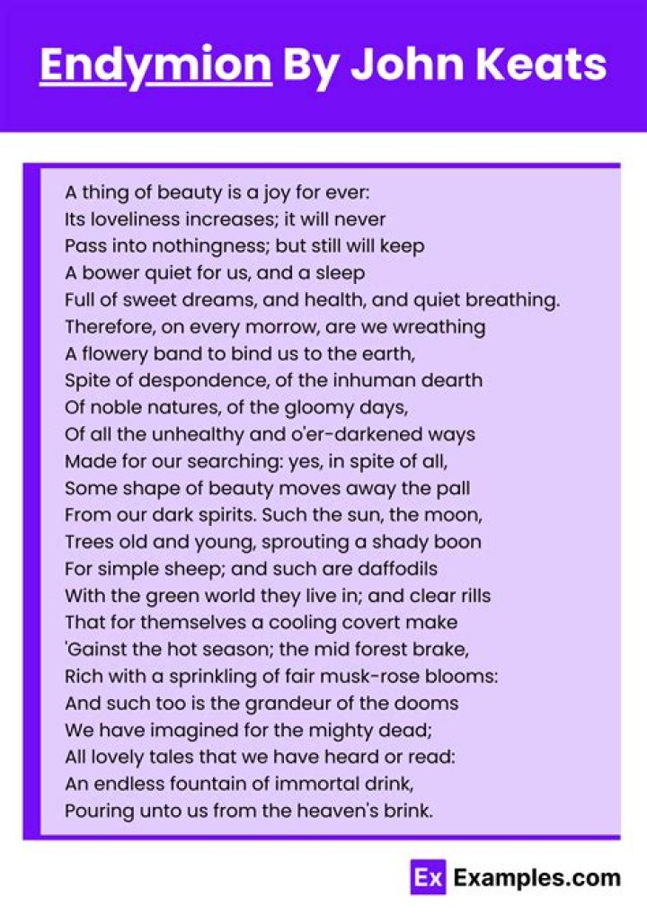 Endymion is an extended narrative poem divided into four books of about one thousand lines each, written mostly in heroic couplets.