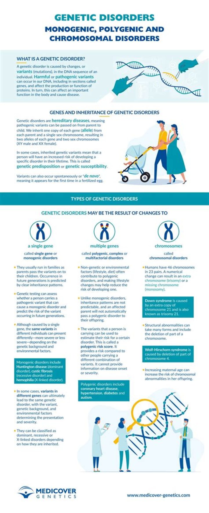 Genetic disorders can be caused by a mutation in one gene (monogenic disorder), by mutations in multiple genes (multifactorial inheritance disorder), by a combination of gene mutations and environmental factors, or by damage to chromosomes (changes in the number or structure of entire chromosomes, the structures that …