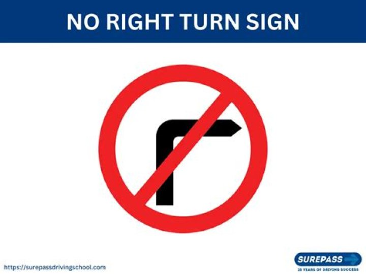 The shape of a No Right Turn sign is a square. As you gain more experience behind the wheel, you can use the color and shape of a No Right Turn sign to recognize its meaning from a farther distance before you’re able to read it.