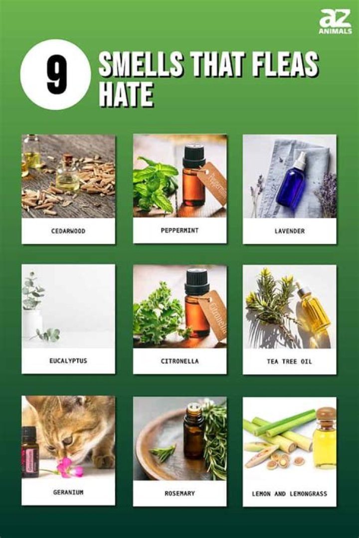 Fleas have a strong sense of smell, which they use to find accessible food sources. You can take advantage of this trait by using scents they dislike, such as cedarwood, mint, vinegar, clove oil, citrus, DEET, lemongrass oil, and rosemary oil.