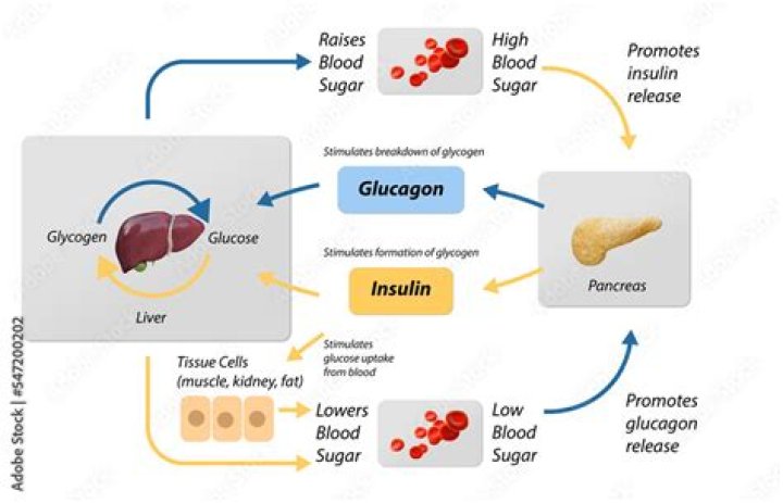 When we eat food, glucose is absorbed from our gut into the bloodstream, raising blood glucose levels. This rise in blood glucose causes insulin to be released from the pancreas so glucose can move inside the cells and be used.