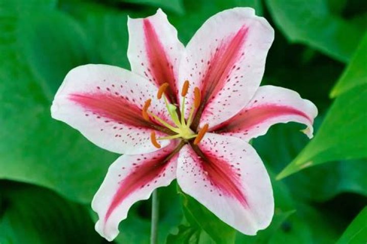 Lilies have six plain or strikingly marked tepals (“petals”) and are often trumpet-shaped, sitting atop a tall, erect stem with narrow, long, lance-shaped leaves. They come in many beautiful colors, including pink, gold, red, orange, and white. … Oriental lilies have that famously strong fragrance.