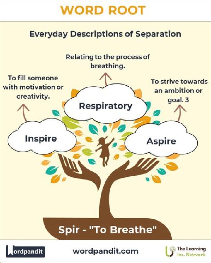 The Latin verb spirare, meaning “breathe,” is the source of a number of verbs (and other parts of speech). Here’s a summary of these words and their meanings. Aspire literally means “breathe on”; the connotation is that one breathes heavily with the exertion of aspiring to a goal.