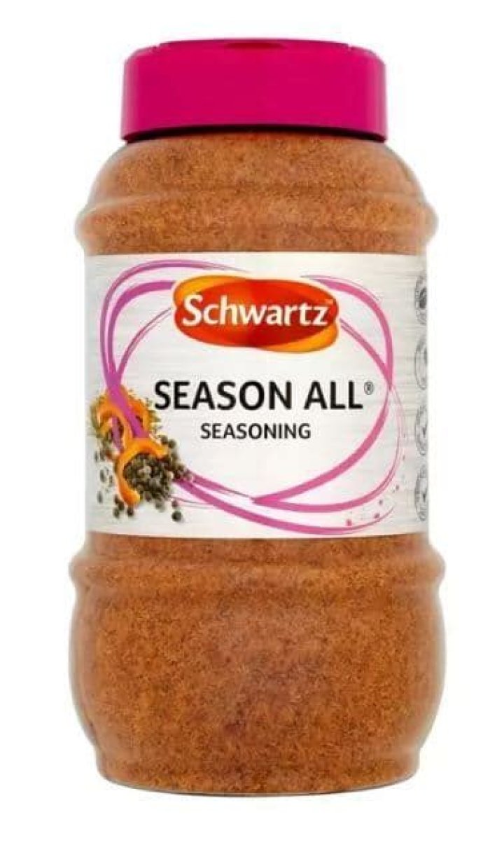 Our SEASON-ALL is expertly blended with paprika, black pepper and celery seeds for perfectly seasoned dishes. Salt, Paprika (4%), Dried Chillies, Dried Onion, Black Pepper (3%), Anti-caking Agent (Calcium Stearate), Garlic Powder, Celery Seed, Nutmeg, Ground Coriander, Colour (Paprika Extract), Cayenne Pepper.