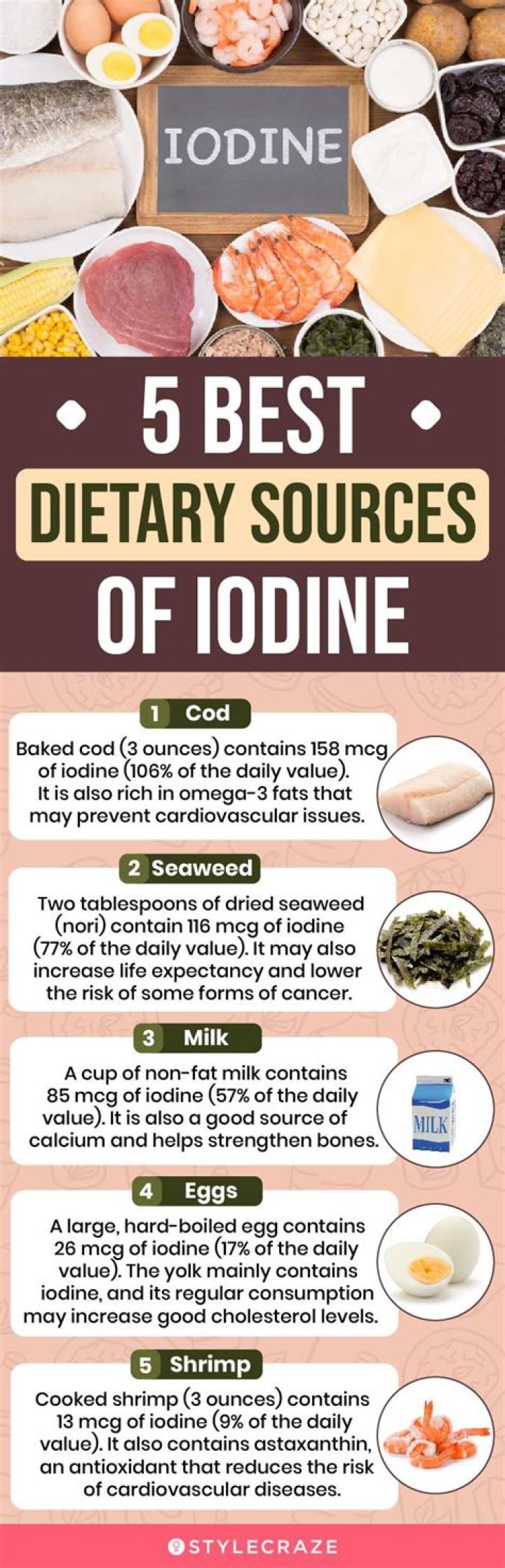 - Fish (such as cod and tuna), seaweed, shrimp, and other seafood, which are generally rich in iodine.