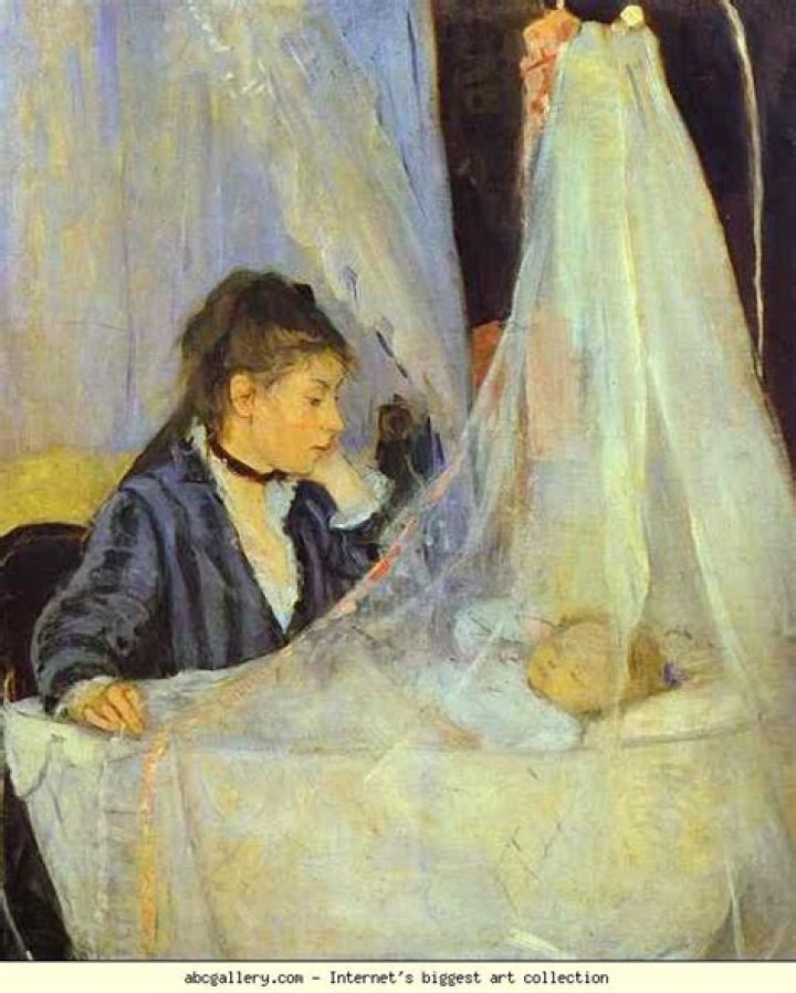 The Cradle by Berthe Morisot It was painted in 1872 in Paris. This painting contains two females one was Berthe Morisot sister and the other was her own daughter. One was Edma who was watching over her younger daughter Blanche.