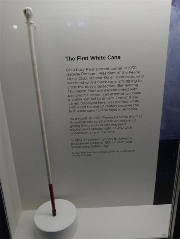 1930: The “white cane” was introduced by George Bonham, president of the Peoria Lions Club (Illinois). One day, he watched a man who was blind attempting to cross a street. The man’s cane was black and motorists couldn’t see it, so Bonham proposed painting the cane white with a red stripe to make it more noticeable.