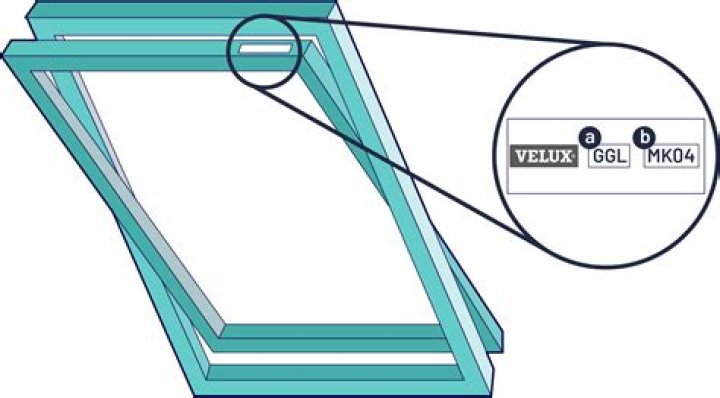 Your Velux® window should have a metal, plastic or sticker plate on the topside of the frame as you open the window. This plate or sticker contains codes, numbers and possibly a barcode.