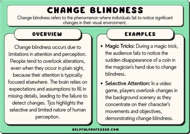 - inattentional blindness: failure to notice something that is completely visible because of a lack of attention.