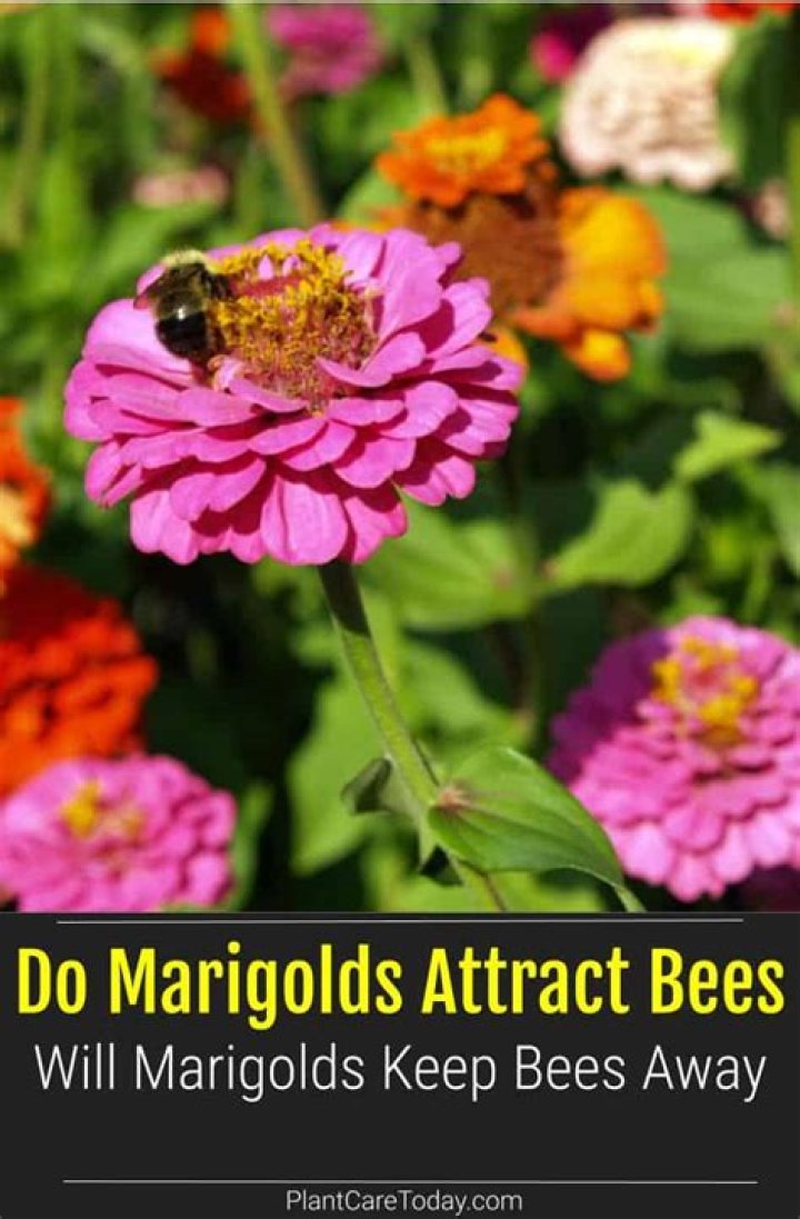 Marigolds are common companion plants, especially for food crops. … As to the question, “will marigolds keep bees away,” there is no proven science that they will, but a lot of folk wisdom seems to indicate that they can. The plants do not repel honeybees, however. Marigolds and honeybees go together like beans and rice.